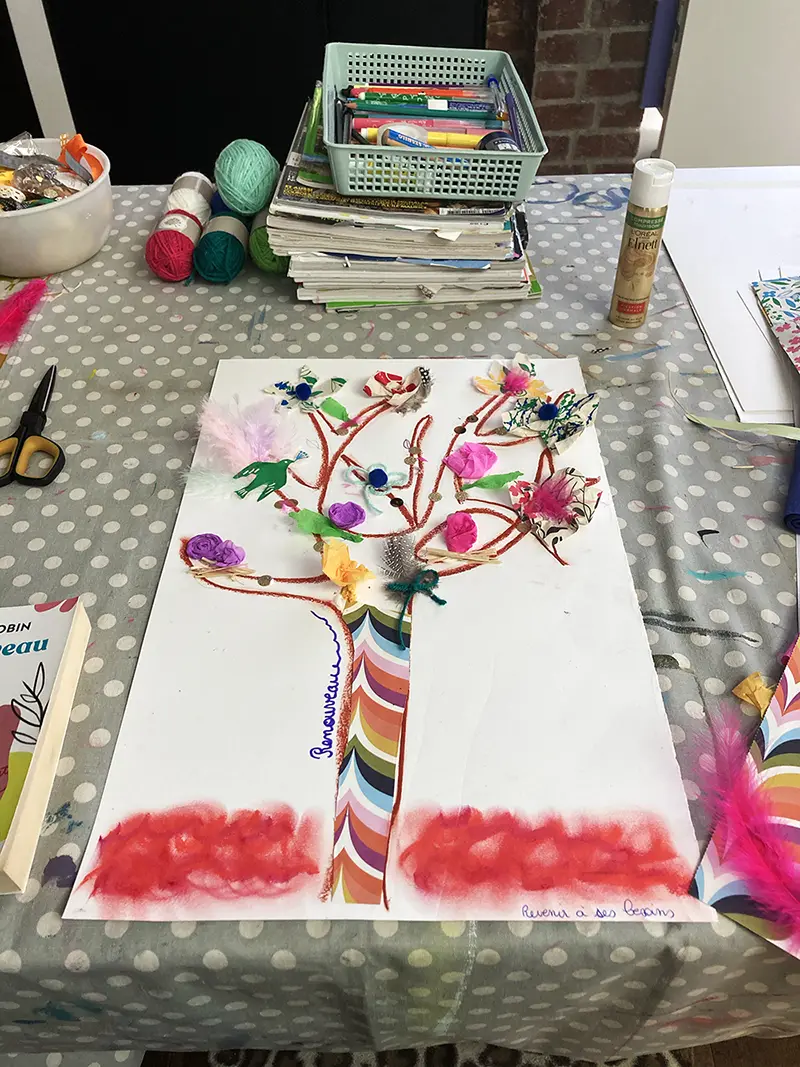 Je m’intéresse ensuite à la petite enfance : je crée une Maison d’Assistantes Maternelles (MAM), où j’accompagne les jeunes enfants dans leur développement. Au fil des années, ce qui me plaît est de mettre en place, de concevoir et d’animer des ateliers autour des expressions plastiques et de prendre soin de la personne.